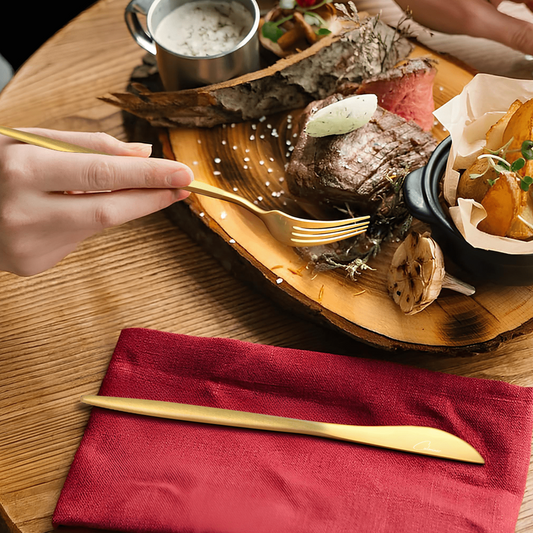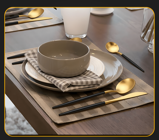 LuxeDîner - Zwart en goud bestek voor vier personen